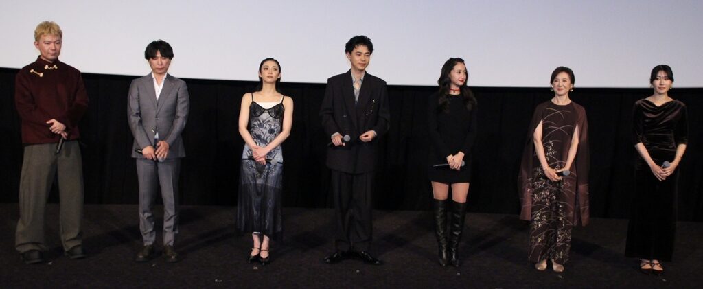 成田凌、共演の沢尻エリカ、山谷花純、赤間麻里子、船ヶ山哲、鈴木志音、白金監督が出席した。